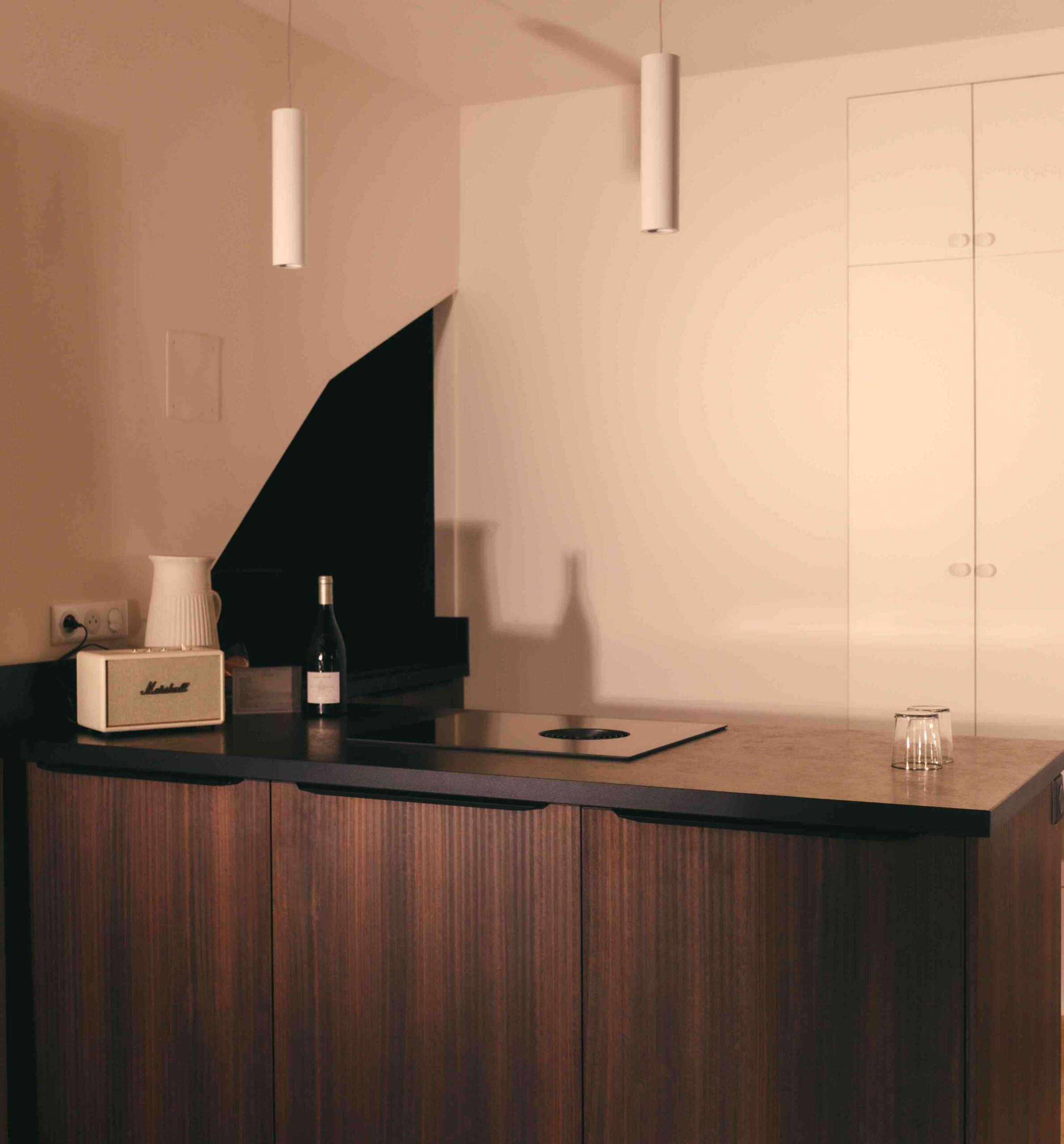 La kitchenette est équipée pour cuisiner des repas simples : évier, réfrigérateur, deux plaques de cuisson électriques, un four, un micro-ondes, un grille-pain, machine à café, bouilloire et ustensiles de cuisine ; Pour votre table : verres à vin en cristal, vaisselle de faïence et nappage.